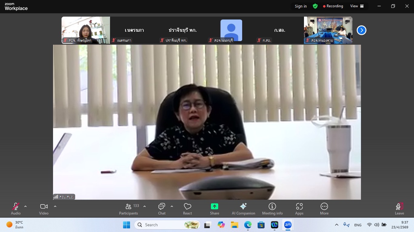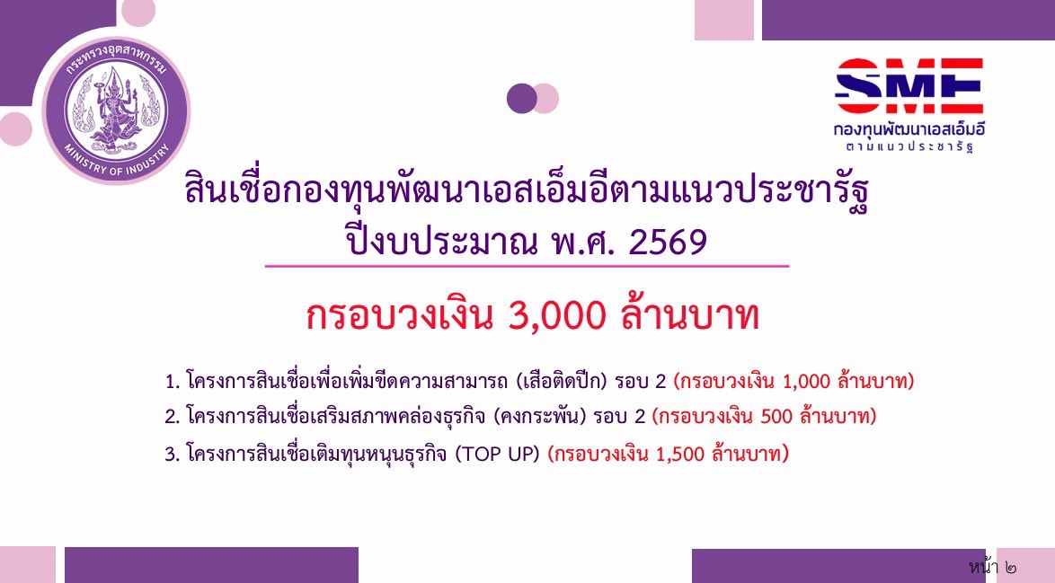 วันพฤหัสบดีที่ 23 เมษายน 2569 เวลา 09.30 น. นางรินทร์รัตน์ดา ซึ้งสัมปทาน อุตสาหกรรมจังหวัดพิษณุโลก พร้อมด้วยนายจุมพล เพชรทวี หัวหน้ากลุ่มส่งเสริมและพัฒนาอุตสาหกรรม และนางสาวบุญสิตา กางด้วง เจ้าหน้าที่บริหารงานทั่วไป เข้าร่วมประชุมรับฟังการชี้แจงแนวทางการดำเนินงานสินเชื่อกองทุนพัฒนาเอสเอ็มอีตามแนวประชารัฐ ประจำปีงบประมาณ พ.ศ. 2569 จัดโดย สำนักงานกองทุนพัฒนาเอสเอ็มอีตามแนวประชารัฐ สำนักงานปลัดกระทรวงอุตสาหกรรม ซึ่งมีวัตถุประสงค์เพื่อเตรียมความพร้อมและสร้างความเข้าใจในการดำเนินงานการให้สินเชื่อผู้ประกอบการ SMEs โดยมี นางสุชาดา โพธิ์เจริญที่ปรึกษาปลัดกระทรวงอุตสาหกรรม กรรมการผู้ทรงคุณวุฒิ ด้านส่งเสริมและพัฒนาวิสาหกิจขนาดกลางและขนาดย่อมเป็นประธาน ผ่านทางสื่ออิเล็กทอรนิกส์ Zoom Meeting ณ สำนักงานอุตสาหกรรมจังหวัดพิษณุโลก ตำบลสมอแข อำเภอเมืองพิษณุโลก จังหวัดพิษณุโลก